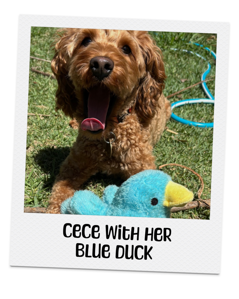 “CeCe is a young dog with plenty of energy. When she gets the zoomies during playtime, she runs so fast she looks like a motorbike rider leaning into the corners – almost flying sideways! She also has ‘pancake’ moments where she tries to disappear by flattening herself completely on the floor.”